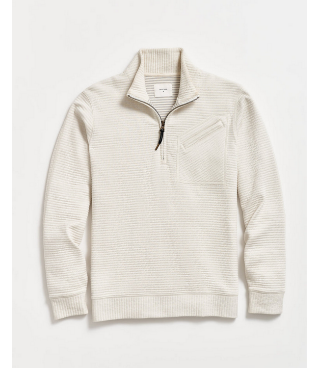 This lightweight half-zip is the perfect transitional layer, made from a comfortable cotton blend and finished with smart details like a subtle quilted stripe, an asymmetrical chest pocket, handsome elbow patches.