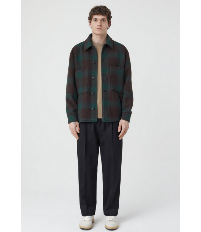 Made of virgin wool with a multi-colour waffle structure and a light touch. This overshirt comes with an exclusive check pattern and has a classic shirt collar. One continuous button border with buttons with a horn look and two front pockets. With inner lining, cuffs, straight sleeve ends and hem.