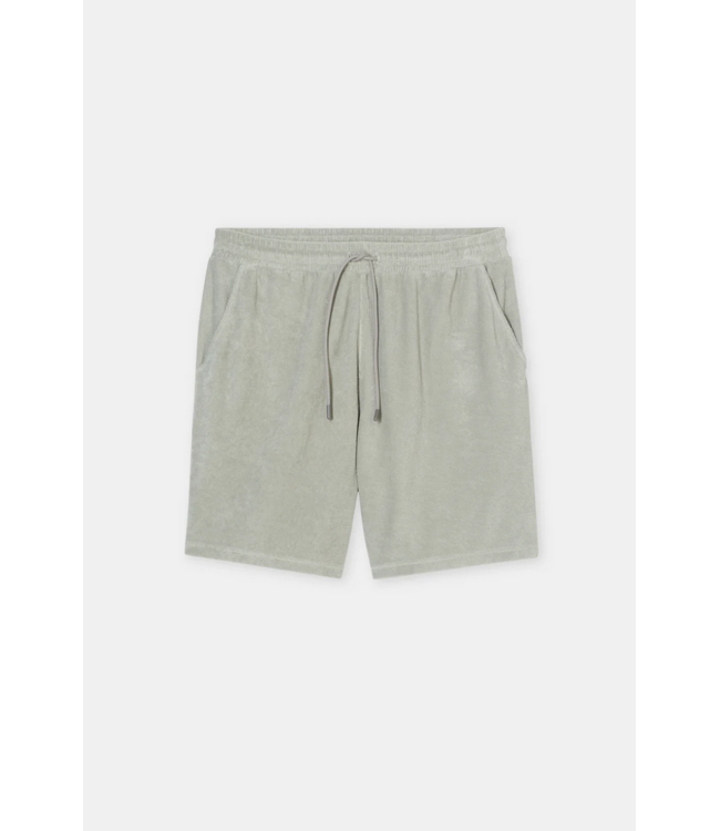 These shorts with a worn-in look are made from a soft cotton blend terrycloth fabric. With side slit pockets, a stretch waistband with drawstring and a back pocket. 100 per cent made in Portugal.