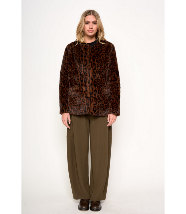 Elevate your look with this chic Classic Leopard print faux fur jacket, designed to add a luxurious touch to any outfit. Featuring stylish patch pockets for added functionality and flair, this jacket combines bold animal print with cozy comfort.