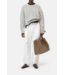 Knitted from a wool-cotton blend yarn with a marbled effect, this crew neck sweater has a regular fit and a striking cable knit pattern. It features ribbed cuffs at the neckline, sleeve ends, and hem. Darts at the sleeve ends create a flattering silhouett