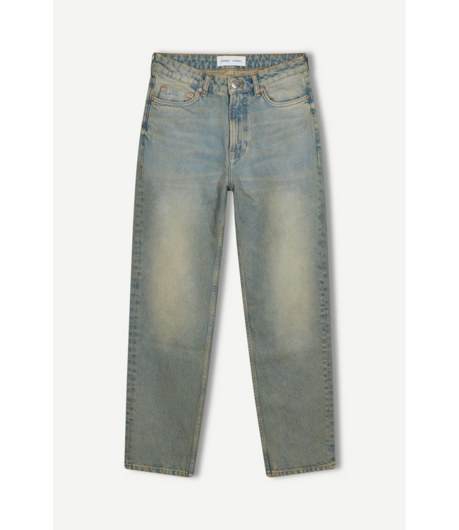 Mid-waist jeans with a regular fit and slightly cropped leg. Button and zipper closure at the fly. Five pocket-style. Lighter wash on the legs and at the back. Main material made from 100% organic cotton.
