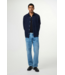 Regular, straight-leg jeans crafted from bleached, midweight 12.50 oz organic cotton denim. Featuring five-pocket styling, button closure with matching rivets, and finished with blue embroidery stitching along the back pocket.